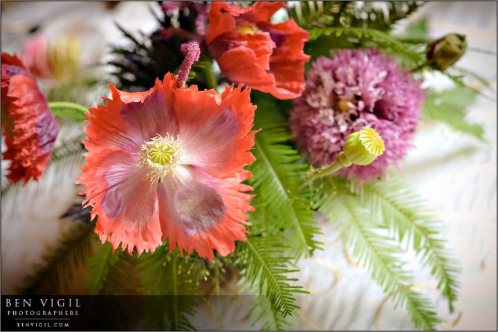 Last week bloom had the pleasure of providing the table centerpieces for the Atlanta Wedding Professionals Networking Luncheon hosted by Atlanta Bride & Groom Planner/ Occasions Magazine in the Grand Salon at The Fox Theatre. I wanted to do something a little unique so I used poppies, allium, rattail statice, giant sea thistle, explosion grass and New Zealand umbrella fern. These photos are courtesy of the fantastically talented Ben Vigil.